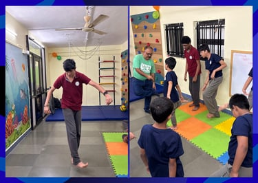 Dance Therapy uses movement and rhythm to help children express emotions, improve body awareness, and build confidence. Through guided dance activities, children develop coordination, balance, and social skills while releasing stress in a joyful and energetic way. It encourages creativity, boosts mood, and supports emotional and physical well being, all through fun movement and music.